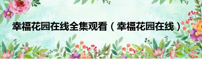 幸福花园在线全集观看(幸福花园在线)