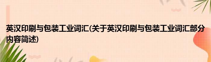 英汉印刷与包装工业词汇(关于英汉印刷与包装工业词汇部分内容简述)