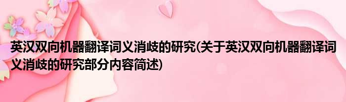 英汉双向机器翻译词义消歧的研究(关于英汉双向机器翻译词义消歧的研究部分内容简述)