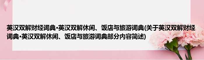 导读 大家好,今天小方来说说一篇关于英汉双解财经词典·英汉双解休闲、饭店与旅游词典,关于英汉双解财经词典·英汉双解休闲、饭店与旅游词典部