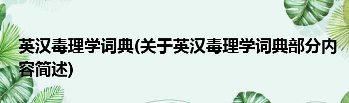 导读 大家好,今天小方来说说一篇关于英汉毒理学词典,关于英汉毒理学词典部分内容简述的文章,那么现在就为大家来简单介绍下,希望对各位小伙伴