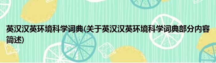 导读 大家好,今天小方来说说一篇关于英汉汉英环境科学词典,关于英汉汉英环境科学词典部分内容简述的文章,那么现在就为大家来简单介绍下,希望