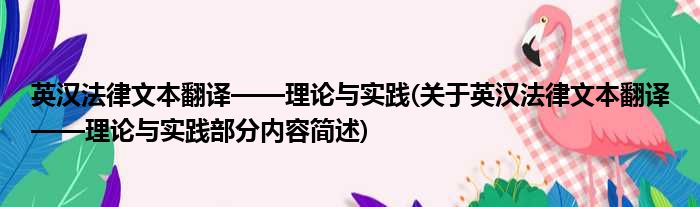 导读 大家好,今天小方来说说一篇关于英汉法律文本翻译——理论与实践,关于英汉法律文本翻译——理论与实践部分内容简述的文章,那么现在就为大