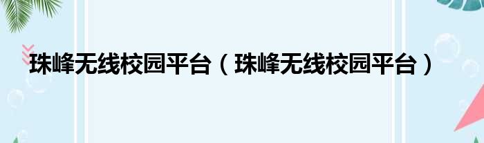 大家好,小活来为大家解答以上的问题。珠峰无线校园平台,珠峰无线校园平台这个很多人还不知道,现在让我们一起来看看吧!