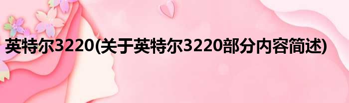 大家好,今天小方来说说一篇关于英特尔3220,关于英特尔3220部分内容简述的文章,那么现在就为大家来简单介绍下,希望对各位小伙伴们有所帮助。
