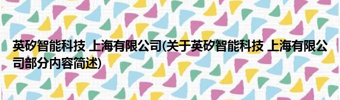 英矽智能科技 上海有限公司(关于英矽智能科技 上海有限公司部分内容简述)