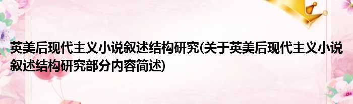 导读 大家好,今天小方来说说一篇关于英美后现代主义小说叙述结构研究,关于英美后现代主义小说叙述结构研究部分内容简述的文章,那么现在就为大