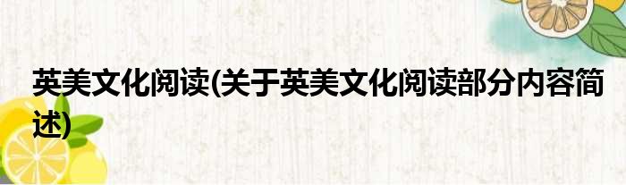 英美文化阅读(关于英美文化阅读部分内容简述)