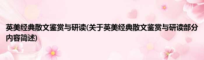 英美经典散文鉴赏与研读(关于英美经典散文鉴赏与研读部分内容简述)