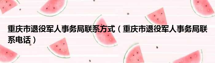 重庆市退役军人事务局联系方式(重庆市退役军人事务局联系电话)
