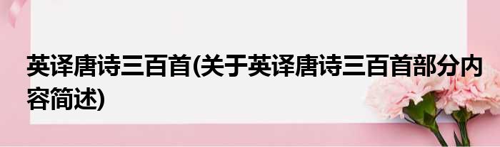 英译唐诗三百首(关于英译唐诗三百首部分内容简述)