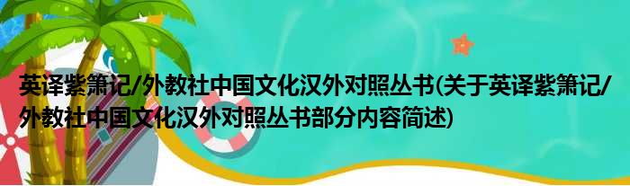 导读 大家好,今天小方来说说一篇关于英译紫箫记 外教社中国文化汉外对照丛书,关于英译紫箫记 外教社中国文化汉外对照丛书部分内容简述的文章,