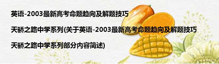 英语-2003最新高考命题趋向及解题技巧|天骄之路中学系列(关于英语-2003最新高考命题趋向及解题技巧|天骄之路中学系列部分内容简述)