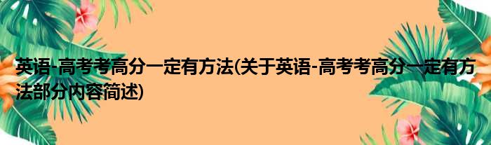 导读 大家好,今天小方来说说一篇关于英语-高考考高分一定有方法,关于英语-高考考高分一定有方法部分内容简述的文章,那么现在就为大家来简单介
