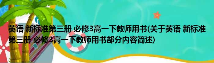 导读 大家好,今天小方来说说一篇关于英语 新标准第三册 必修3高一下教师用书,关于英语 新标准第三册 必修3高一下教师用书部分内容简述的文