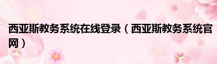 西亚斯教务系统在线登录(西亚斯教务系统官网)