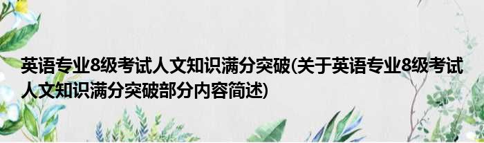 导读 大家好,今天小方来说说一篇关于英语专业8级考试人文知识满分突破,关于英语专业8级考试人文知识满分突破部分内容简述的文章,那么现在就为