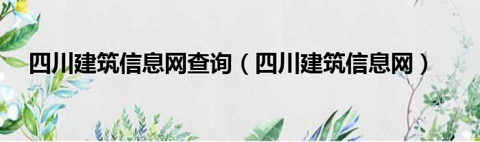 四川建筑信息网查询(四川建筑信息网)