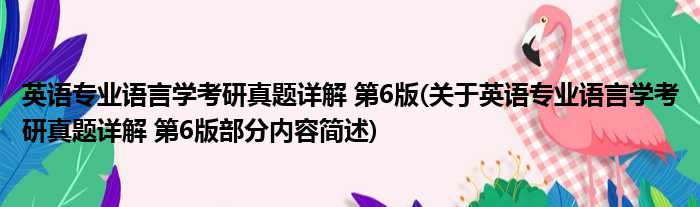 导读 大家好,今天小方来说说一篇关于英语专业语言学考研真题详解 第6版,关于英语专业语言学考研真题详解 第6版部分内容简述的文章,那么现在