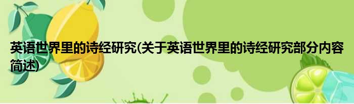 英语世界里的诗经研究(关于英语世界里的诗经研究部分内容简述)