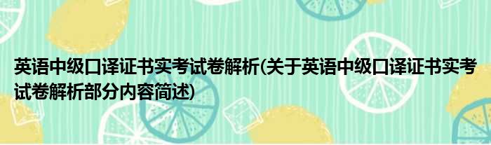 英语中级口译证书实考试卷解析(关于英语中级口译证书实考试卷解析部分内容简述)