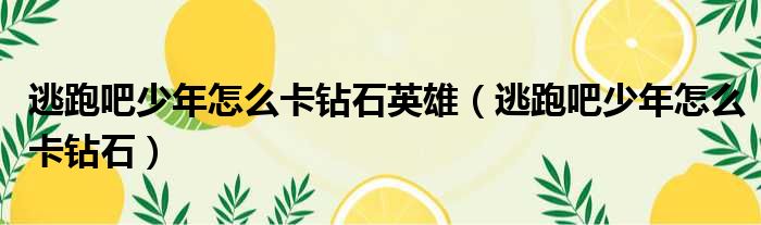 逃跑吧少年怎么卡钻石英雄(逃跑吧少年怎么卡钻石)