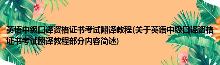 导读 大家好,今天小方来说说一篇关于英语中级口译资格证书考试翻译教程,关于英语中级口译资格证书考试翻译教程部分内容简述的文章,那么现在就