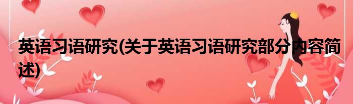 大家好,今天小方来说说一篇关于英语习语研究,关于英语习语研究部分内容简述的文章,那么现在就为大家来简单介绍下,希望对各位小伙伴们有所帮助。