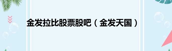 大家好,小活来为大家解答以上的问题。金发拉比股票股吧,金发天国这个很多人还不知道,现在让我们一起来看看吧!