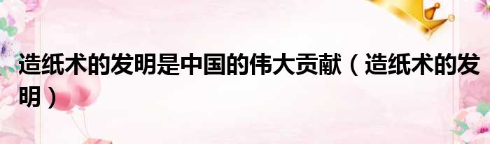 造纸术的发明是中国的伟大贡献(造纸术的发明)