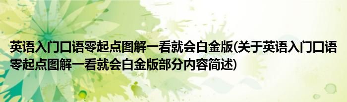 导读 大家好,今天小方来说说一篇关于英语入门口语零起点图解一看就会白金版,关于英语入门口语零起点图解一看就会白金版部分内容简述的文章,那