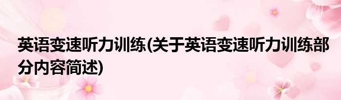英语变速听力训练(关于英语变速听力训练部分内容简述)