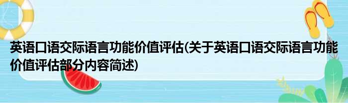 英语口语交际语言功能价值评估(关于英语口语交际语言功能价值评估部分内容简述)