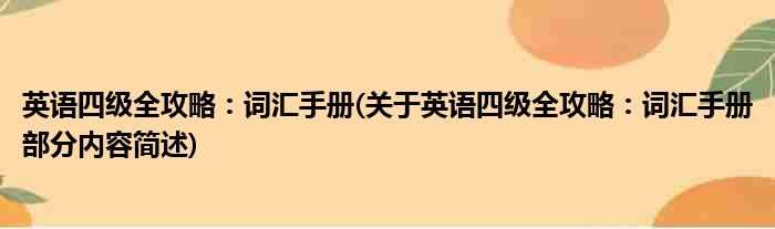 导读 大家好,今天小方来说说一篇关于英语四级全攻略:词汇手册,关于英语四级全攻略:词汇手册部分内容简述的文章,那么现在就为大家来简单介绍