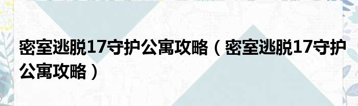 密室逃脱17守护公寓攻略(密室逃脱17守护公寓攻略)
