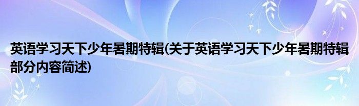 英语学习天下少年暑期特辑(关于英语学习天下少年暑期特辑部分内容简述)