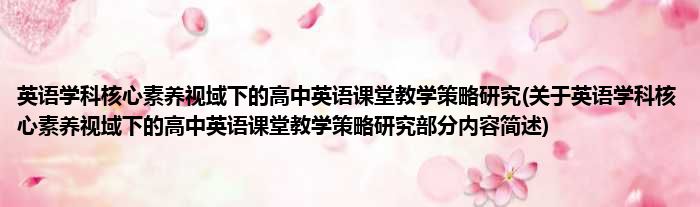 英语学科核心素养视域下的高中英语课堂教学策略研究(关于英语学科核心素养视域下的高中英语课堂教学策略研究部分内容简述)