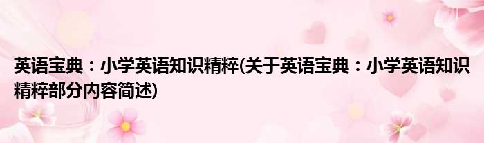 导读 大家好,今天小方来说说一篇关于英语宝典:小学英语知识精粹,关于英语宝典:小学英语知识精粹部分内容简述的文章,那么现在就为大家来简单