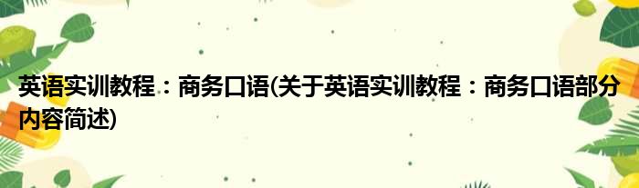 英语实训教程:商务口语(关于英语实训教程:商务口语部分内容简述)