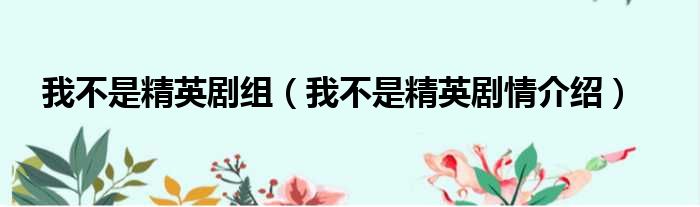 大家好,小活来为大家解答以上的问题。我不是精英剧组,我不是精英剧情介绍这个很多人还不知道,现在让我们一起来看看吧!