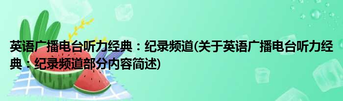 导读 大家好,今天小方来说说一篇关于英语广播电台听力经典:纪录频道,关于英语广播电台听力经典:纪录频道部分内容简述的文章,那么现在就为大