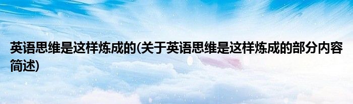 英语思维是这样炼成的(关于英语思维是这样炼成的部分内容简述)