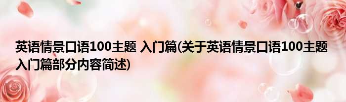 导读 大家好,今天小方来说说一篇关于英语情景口语100主题 入门篇,关于英语情景口语100主题 入门篇部分内容简述的文章,那么现在就为大家来简