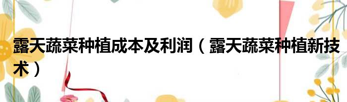 露天蔬菜种植成本及利润(露天蔬菜种植新技术)