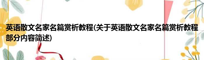 英语散文名家名篇赏析教程(关于英语散文名家名篇赏析教程部分内容简述)