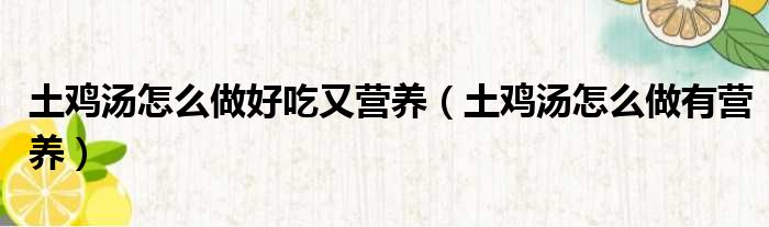 土鸡汤怎么做好吃又营养(土鸡汤怎么做有营养)