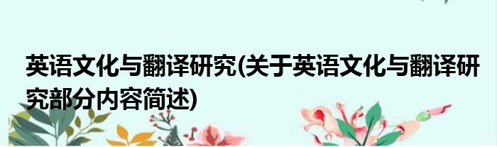 英语文化与翻译研究(关于英语文化与翻译研究部分内容简述)