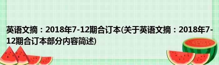 导读 大家好,今天小方来说说一篇关于英语文摘:2018年7-12期合订本,关于英语文摘:2018年7-12期合订本部分内容简述的文章,那么现在就为大家来