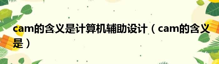 导读 大家好,小活来为大家解答以上的问题。cam的含义是计算机辅助设计,cam的含义是这个很多人还不知道,现在让我们一起来看看吧!1、CAM是指生产