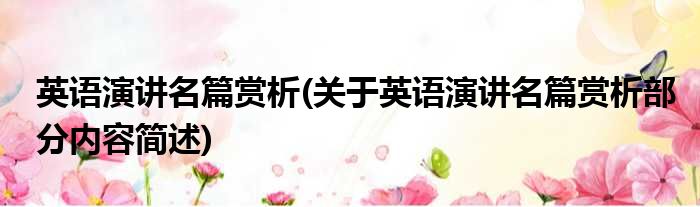 英语演讲名篇赏析(关于英语演讲名篇赏析部分内容简述)